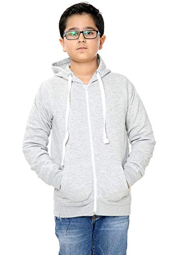 Felpa con cappuccio unisex per ragazzi e ragazze, tinta unita, con cerniera, con cappuccio e cappuccio, per uso scolastico, taglia UK 7-13 anni Grigio 13 anni