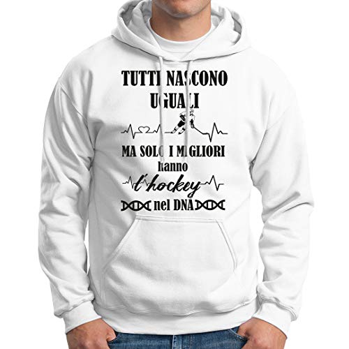 Felpa Divertente Uomo - Tutti Nascono uguali ma Solo i Migliori Hanno l' Hockey nel Dna - Idea Regalo Uomo - Felpa Uomo con Cappuccio