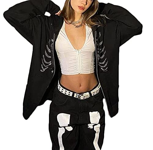 Y2k - Felpa da donna con cappuccio e cerniera lampo, stile gotico, Y2K E-Girl Hipster, Z7, M