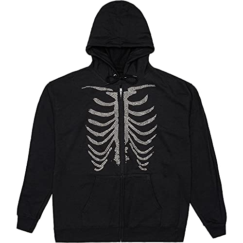 Comfort: la felpa con cappuccio da donna Rhinestone Skeleton Cross Print è dotata di una cerniera liscia per aprire e chiudere e lo spessore è moderato, leggero, confortevole e traspirante.