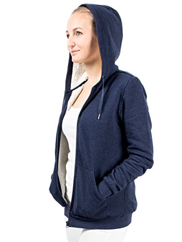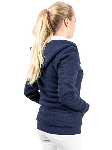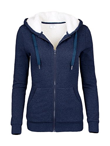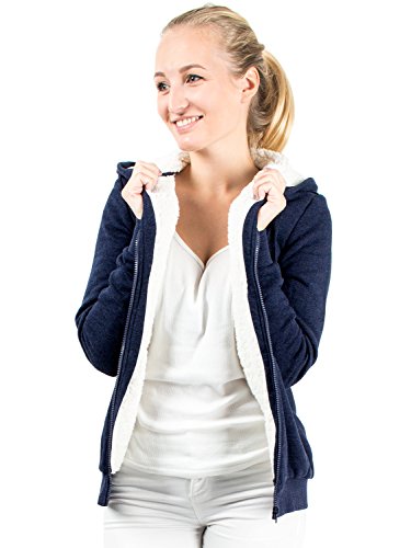Felpa donna con cappuccio foderata in tessuto sherpa, Felpa con zip, Felpa con fodera in sherpa blu