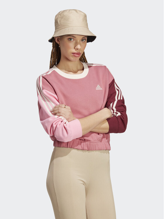 Felpa Essentials 3-Stripes Crop Sweatshirt IC9875 Rosa Loose Fit