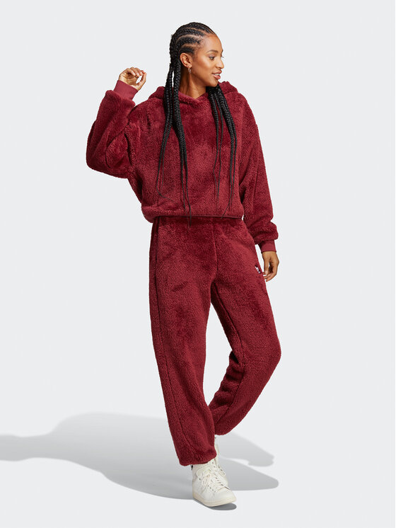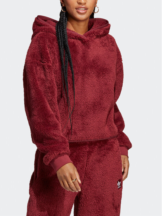 Felpa Essentials+ Fluffy Teddy Hoodie HY1719 Rosso Loose Fit