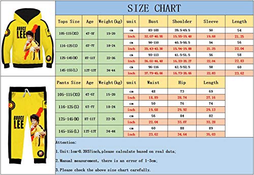 Caratteristica: felpa con cappuccio dei cartoni animati di Bruce Lee e pantaloni Bruce Lee, pullover a maniche lunghe di kung fu e pantaloni in vita elastica, ottimo regalo per gli appassionati di kung fu.