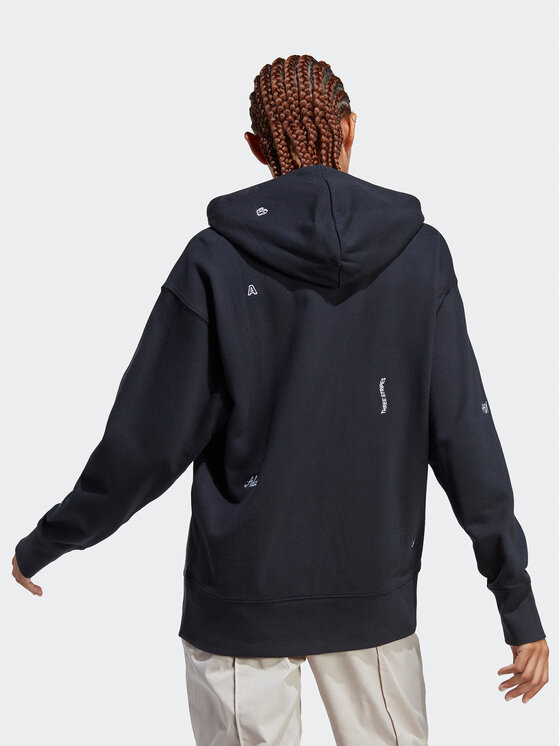 Felpa Relaxed Hoodie with Healing Crystals-Inspired Graphics IC0803 Nero Loose Fit