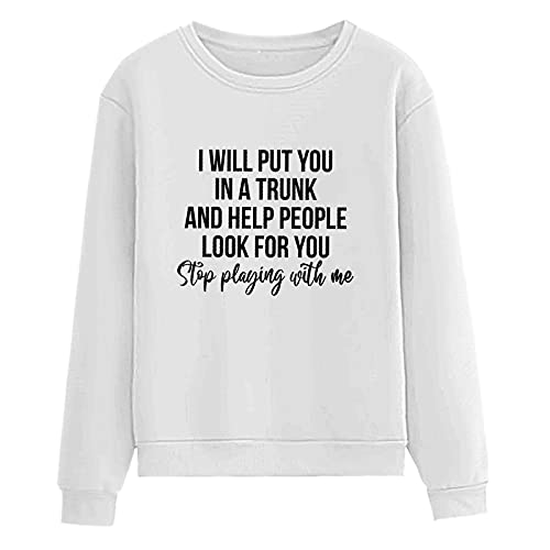 Felpa Stampa Donna Camicetta Pullover Casual Manica Lunga Donna Felpe con cappuccio e Felpe, bianco, S