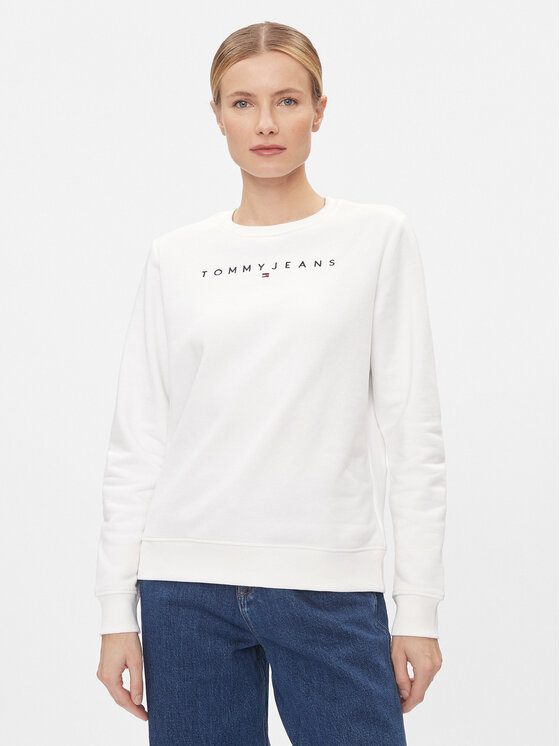 Tommy Jeans Felpa Linear DW0DW17323 Bianco Regular Fit
