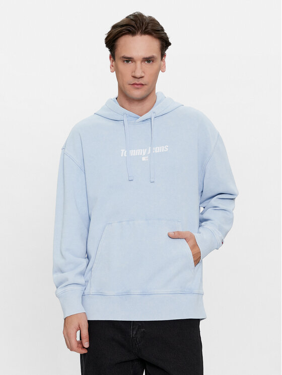 Tommy Jeans Felpa Washed Linear DM0DM17787 Celeste Relaxed Fit