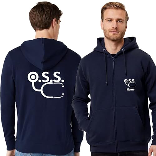 TCD Felpa Unisex OSS Operatore Socio Sanitario con Zip colore blu scuro - Personalizzata con stampa Fronte/Retro - SPEDIZIONE Gratuita (XS, OSS FONENDOSCOPIO ORIZZONTALE, BIANCO)