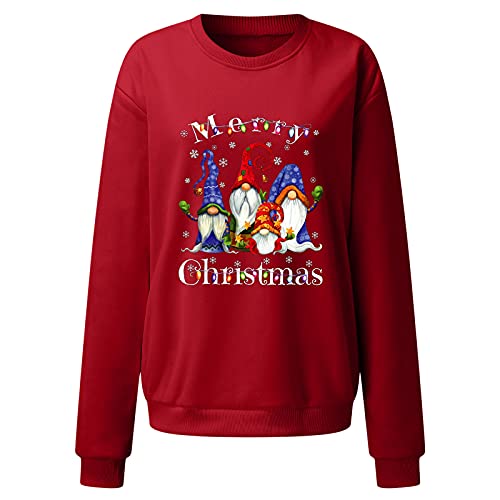 Felpe con cappuccio di Natale per le donne con disegni, Felpa a maniche lunghe con stampa da donna Casual camicetta pullover,Giacca con cappuccio a maniche lunghe da donna con cappuccio tinta unita, D-rosso, S