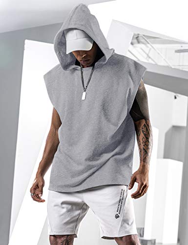 Felpe con cappuccio senza maniche da uomo gilet top vestiti estivi bodybuilding muscolare tinta unita allenamento palestra camicia grigio M, Grigio, M