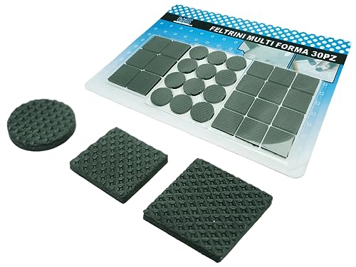 Feltrini Adesivi Salva Pavimenti Neri Rotondi e Quadrati Assortiti per Sedie e Mobili 3mm, Set da 30 Pezzi (30)