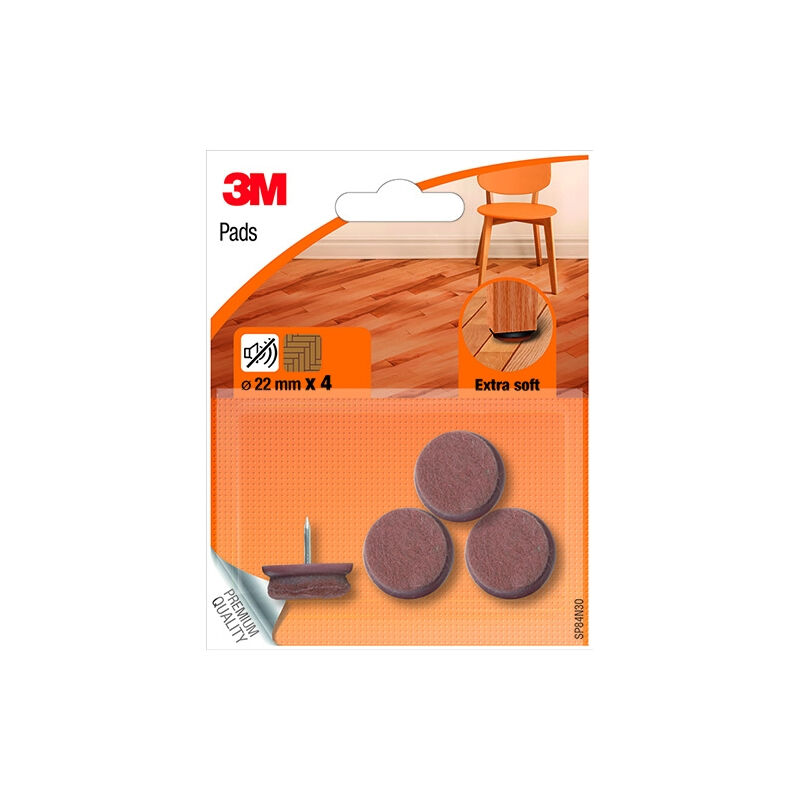 3M - 4 FELTRINI IN LANA ULTRA MORBIDI CON CHIODO D. 22mm I feltrini protettivi 3M proteggono le superfici, prevenendo i graffi e riducendo il rumore (-30 dB) durante lo spostamento dei mobili. Con trattamento scotchgard, trattamento protettivo di nuova generazione, applicato ai feltrini in fase di produzione gli conferisce prestazioni di repellenza all'acqua ed ai liquidi di varia natura, facilitando la rimozione delle macchie e dello sporco. ANTIRUMORE