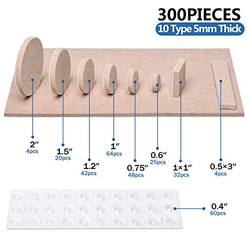 Feltrini per Mobili Feltrini Autoadesivi per Sedie 300 Pezzi Feltrini Autoadesivi Assortiti Antigraffio ed Antirumore, Feltrini Sedie -Proteggi i tuoi pavimenti - Beige