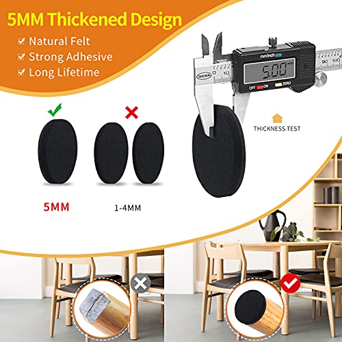 [Durata Della Vita Più Lunga]: Questi feltrini per piedini per mobili hanno un adesivo tenace sul retro che tengono saldamente i cuscinetti sui mobili per un lungo periodo di tempo. Questi feltrini hanno uno spessore di 5 mm, ovvero il doppio dello spessore della maggior parte degli altri cuscinetti. Sono più resistenti all'usura e hanno una durata maggiore.