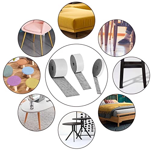 Feltrini Sedie,Feltro Adesivo 3Rotolo,Feltrini Adesivi,Feltro 3MM(1M*1.5CM/3CM/5CM),Feltrini per Mobili,Felt Strip Tagliato in Rotondi Quadrati,Felt Furniture Pads per Tavolo,Divano,Parquet(Grigio)