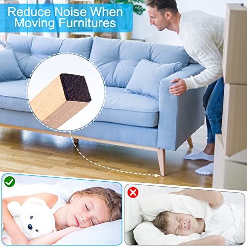 Feltrini per Sedies,moinkerin 144 Pezzi Feltrini Autoadesivi(Quadrato e Rotondo)-Marrone Feltro per Mobili 3mm Per Mobili Piedi per Sedie, Pavimenti in Legno Duro