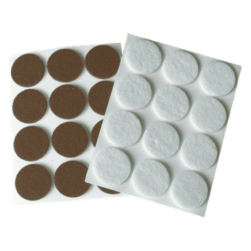 Feltro adesivo protettivo disponibile in vari colori. Caratteristiche tecniche: Misura: disponibile in: 27 x 3 mm., 22 x 3 mm., 17 x 3 mm. Finitura: bianco e marrone Pezzi: 2 Imballaggio: pelle