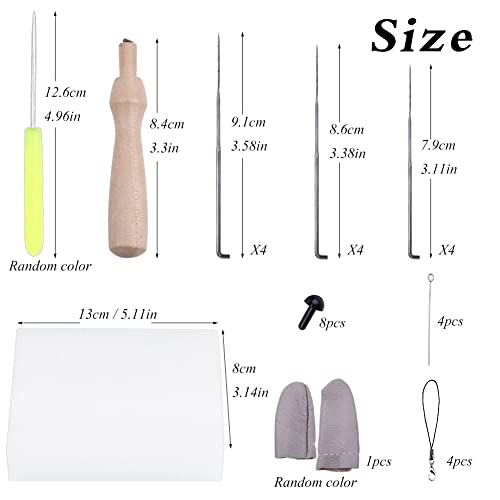 Il kit per infeltrimento include: questo kit di avviamento per infeltrimento ad ago include 4 sacchetti per materiali per la fabbricazione di animali, 12 aghi per feltro, istruzioni, dito, strumento per infeltrimento in legno, tappetino per feltro, occhi in plastica nera, punteruolo. Può essere un bel cofanetto regalo per mamma, amici e altri.