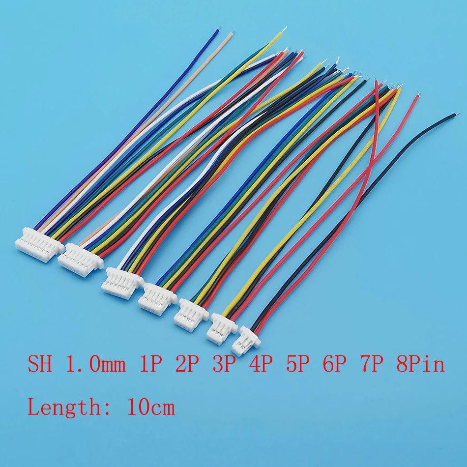10 Pcs JST SH1.0 SH 1.0mm Female Single Plug Wire Cable Connector Pitch 1.0 mm Terminal Plug Wire 28AWG Length 10cm