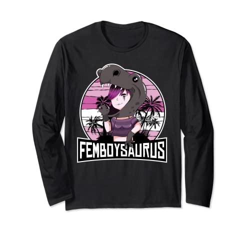 Femboy Gothic Anime Boy Crossdressing Dinosaur Femboysaurus Maglia a Manica