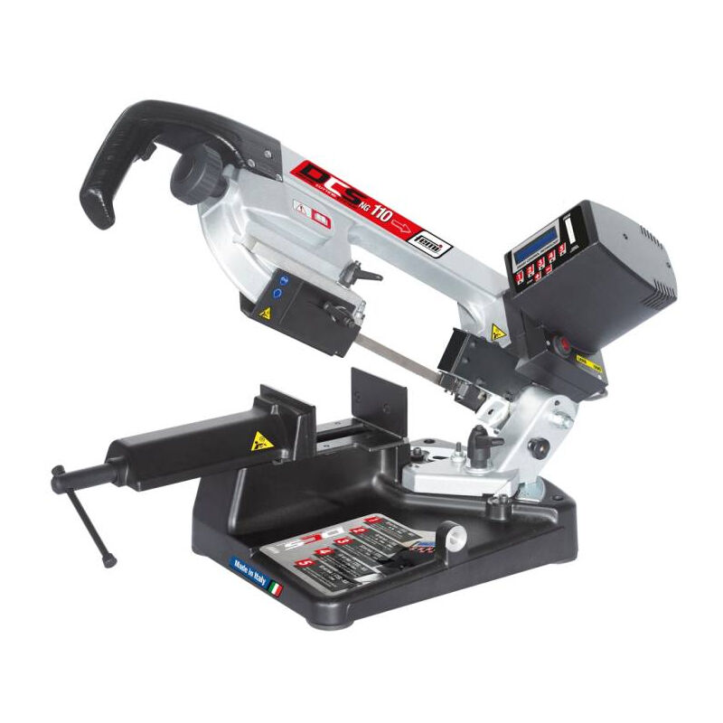 Dettagli: L'inversione della rotazione della lama (NG System) riduce i tempi di taglio fino al 40% rispetto a una sega tradizionale. Innovativo tendilama a frizione per un controllo e una regolazione precisi della tensione della lama (brevettato) Angolo di taglio regolabile da 0° a 45° a sinistra Solida base in alluminio fuso con morsa integrata Pulsante di avvio a bassa tensione Dotazione: Arresto di lunghezza regolabile per seghe in serie (L=500 mm) Filtro per interferenze elettromagnetiche conforme alla norma vigente Caratteristiche: Abbassamento del braccio: manuale Sviluppo lama (mm): 1335x13x0,65 Potenza motore (watt): 950 Alimentazione (Volt-Hz): 230 - 50 Peso (Kg): 17 Velocità della lama (mt/min): 30÷80 controllo elettronico della velocità Velocità costante Dimensione dei denti Z/1: 8/12 Imballaggio (mm): 730x390x500 950