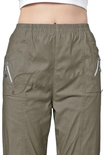 Femiss Pantaloni Capri da donna, elasticizzati, senza lacci, a 3/4, morbidi, estivi, a tre quarti, pantaloni taglie forti, Caff, 50