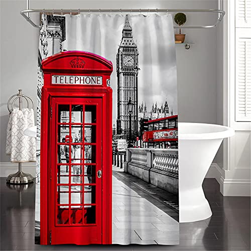 Fenda da Doccia Impermeabile con Ganci Cabina Telefonica di Londra Resistente alle Muffe, Antibatterico Tenda per la Doccia Lavabili per Il Bagno 200 x 200 cm
