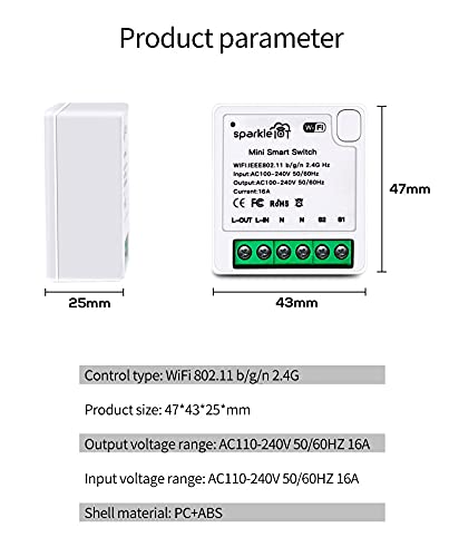 Fengchuang 2 pz Tuya Mini Wifi Smart Switch,con funzione di temporizzazione,16A 2 vie DIY Smart Light Switch Module Smart Life/Tuya APP,compatibile con Alexa Google Home