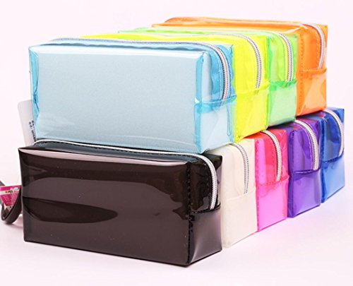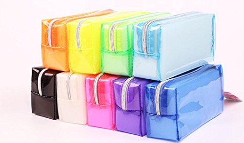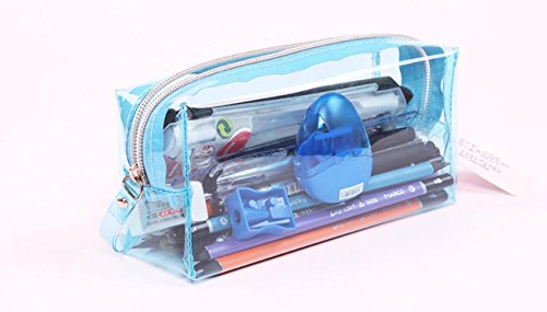 Fengh - Astuccio grande in gelatina trasparente, tinta unita con borsa per cosmetici con cerniera, colore: Azzurro