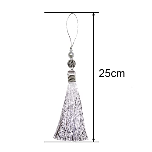 Fenghuangwu - Confezione da 4 nappe colorate, semplice ed elegante, con nappe da appendere, con perline e nappe, per portachiavi (argento)