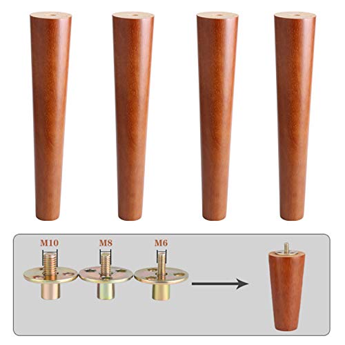 FENGSHOUU 4 Gambe di Mobili in Legno di Gomma Solido,Cono Piede per Divani,Piedini da Tavolo da Cucina di Ricambio,Letto Armadio Sedia Mobile TV Piedi,Colore Noce,Con Asta Filettata (60cm/23.62in,M6)