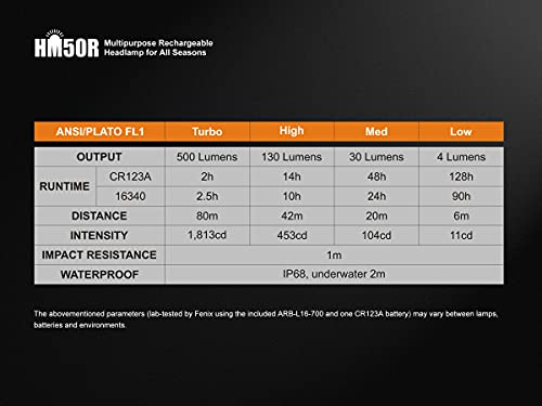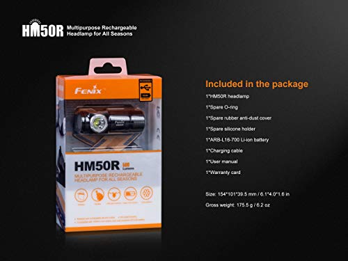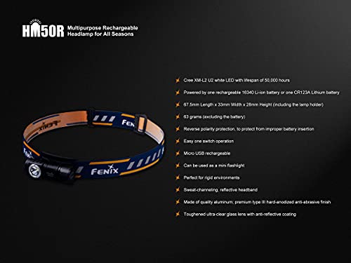 Fenix - HM50R Torcia Frontale Ricaricabile da 500 Lumen Con Cassa Centrale In Alluminio Resistente e Impermeabile, Ricarica USB, 4 Livelli Luce