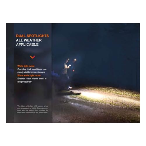 FENIX HM65R-DT - Faro leggero a doppio fascio per corsa, campeggio, attività all'aperto, sport con fascia sportiva, colore: viola scuro