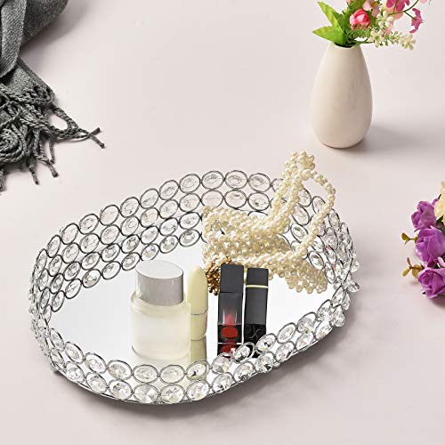 Fenteer Vassoio per Trucco cosmetico in Cristallo AntiGraffio con Superficie a Specchio in Cristallo organizzatore Ornato Vassoio per Bottiglia di Profumo - M