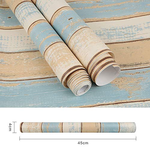 FENTIS Carta da parati in legno, carta da parati autoadesiva marrone-blu, carta da parati a righe in legno, una scheda di contatto, carta da parati rimovibile per cucina, porta, armadio, bar,