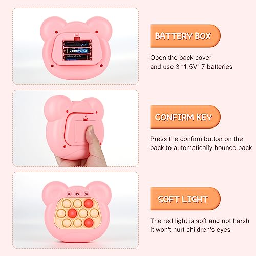 [Materiale sicuro]: Pop game machine è realizzato in materiale ABS di alta qualità, privo di spigoli e spigoli vivi, comodo e liscio al tatto, resistente e sicuro, facile da pulire, riutilizzabile, console di gioco quick push bubbles offre un divertimento senza fine per i bambini.