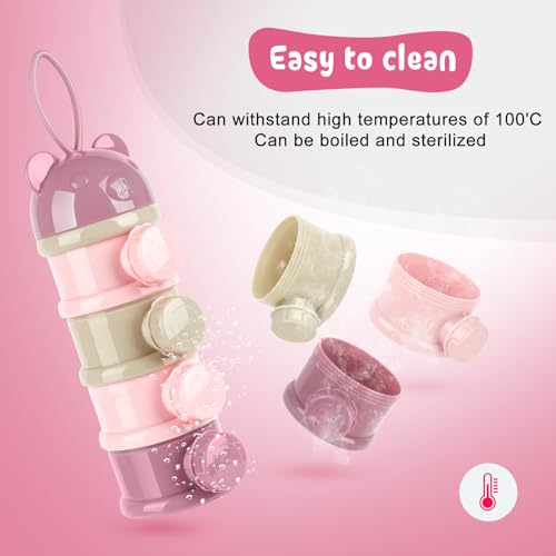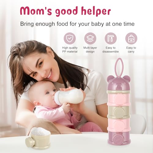 FENYW Portionatore per latte in polvere per bambini, scatola per alimenti per neonati, contenitore per latte in polvere, 4 strati, impilabile, senza BPA, per latte in polvere, frutta, snack, noci per