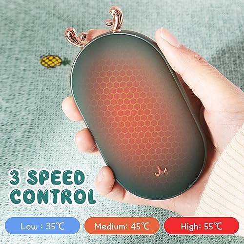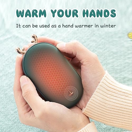 FENYW Scaldamani ricaricabile, scaldamani elettrico portatile da 5200 mAh con 3 modalità di riscaldamento, scaldamani riutilizzabile USB Power Bank regalo per donne, uomini, sport invernali(Verde)