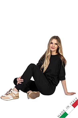 Fenzy Tuta Donna da Ginnastica Sportiva Atlana - Made in Italy - Completo d' Abbigliamento Sportivo (anche Taglie Forti) - Maglia e Pantaloni Lunghi Eleganti - Colore Nero