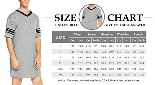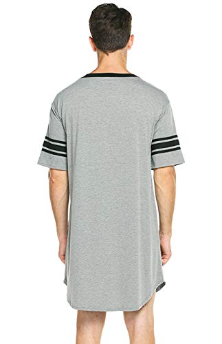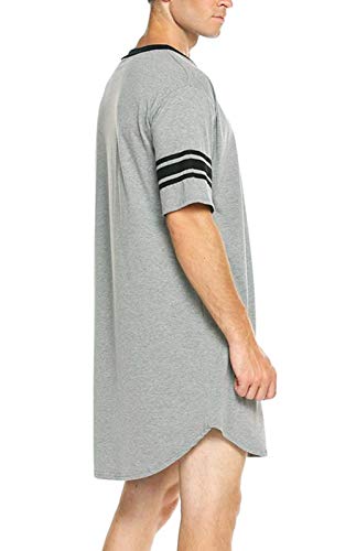 FEOYA Camicia da Notte Uomo Cotone Camicia da Notte Uomo Manica Corta Maglietta Lunga Uomo S-3Xl, grigio, XXXL
