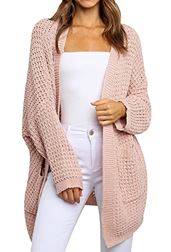 FEOYA Donna Cappotto da Maglione Maniche Lunghe Elegante più lungo Elegante Cardigan Donna Cardigan da Maglione per Primavera Autunno e Inverno Rosa