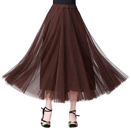 FEOYA Donna Gonna Lunga di Tulle Elastico in Vita Stile Elegante Casual Irregolare Tulle Gonna Pieghe Tutù di Balletto da Adulta per Ballo di Fine Anno Spiaggia Vacanze Beige S