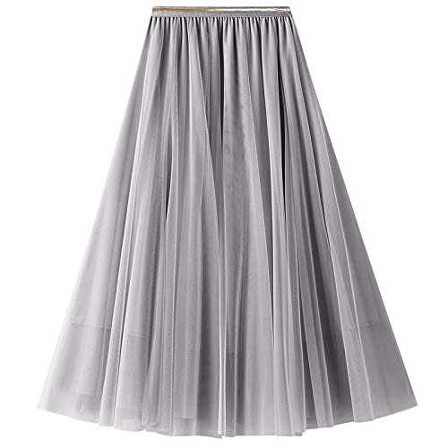 Elegante gonna lunga in tulle a vita alta da donna, realizzata in poliestere, morbido, leggero e arioso, comodo da indossare.