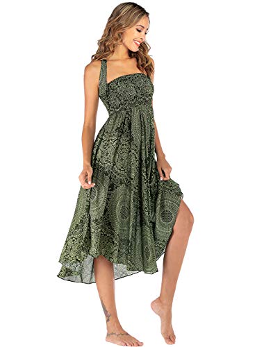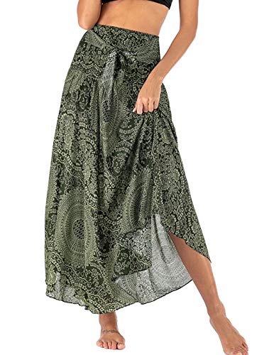 FEOYA Donne Maxi Gonna Estate Boho Dress 2-in-1 Tempo Libero Stampato Gonna Elastico Vita Lunga Gonna