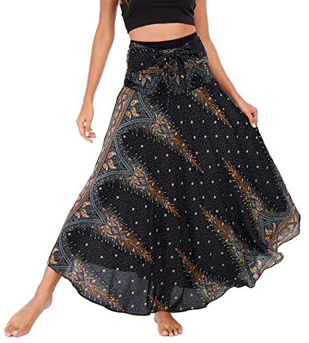 FEOYA Gonna Donna Estiva in Vita Alta con Stampa Gonna Lunga Tulle Elegante Hippie Boho Zingaro Elastica Capestro Gonna per Spiaggia Festa Festival Cerimonia