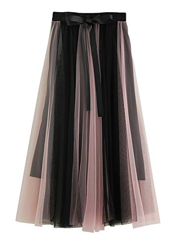 FEOYA - Gonna lunga da donna, in tulle, per autunno e inverno, con ampio elastico, gonna trapezoidale Rosa nero Taglia unica
