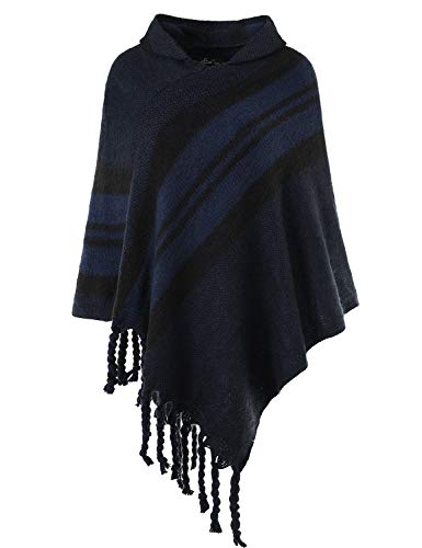 Ferand Elegante Poncho Mantella Donna Uncinetto a Righe con Cappuccio