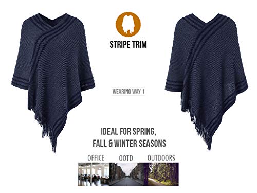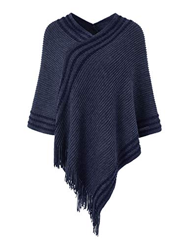 Ferand Poncho da Donna in Maglia con Frange - Mantella Scialle Invernale - Taglia Unica (Adatta per S - L) - Blu Navy