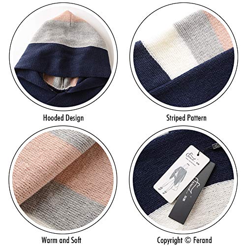 Ferand - Pullover Poncho Maglione da Donna con Frangia - Lavorato a Maglia, Mantella, Righe Grandi, Coprispalle Elegante - Taglia Unica - con Cappuccio: Blu Navy e Rosa